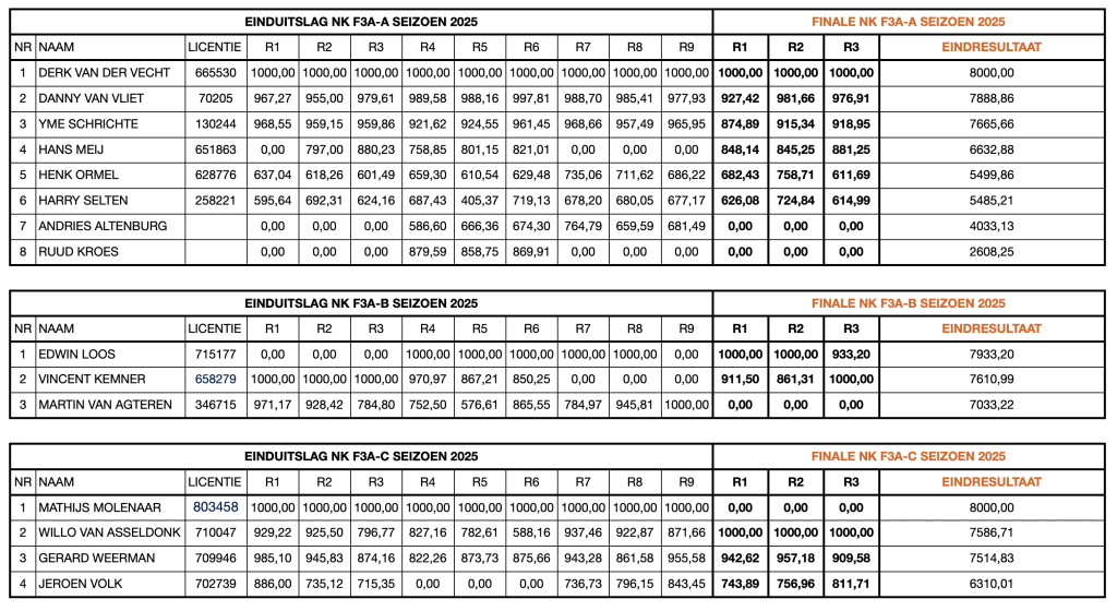 Berekening NK Seizoen 2025 is alsvolgt;